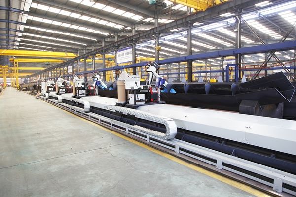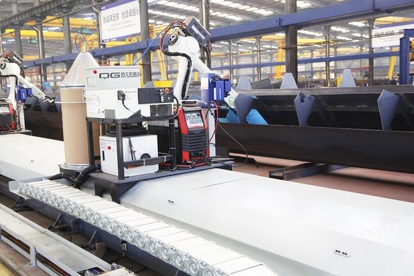 所以,我們列裝了一系列的焊接機器人,包括目前這條正在運行的單梁起重機主梁內縫機器人焊接流水線
